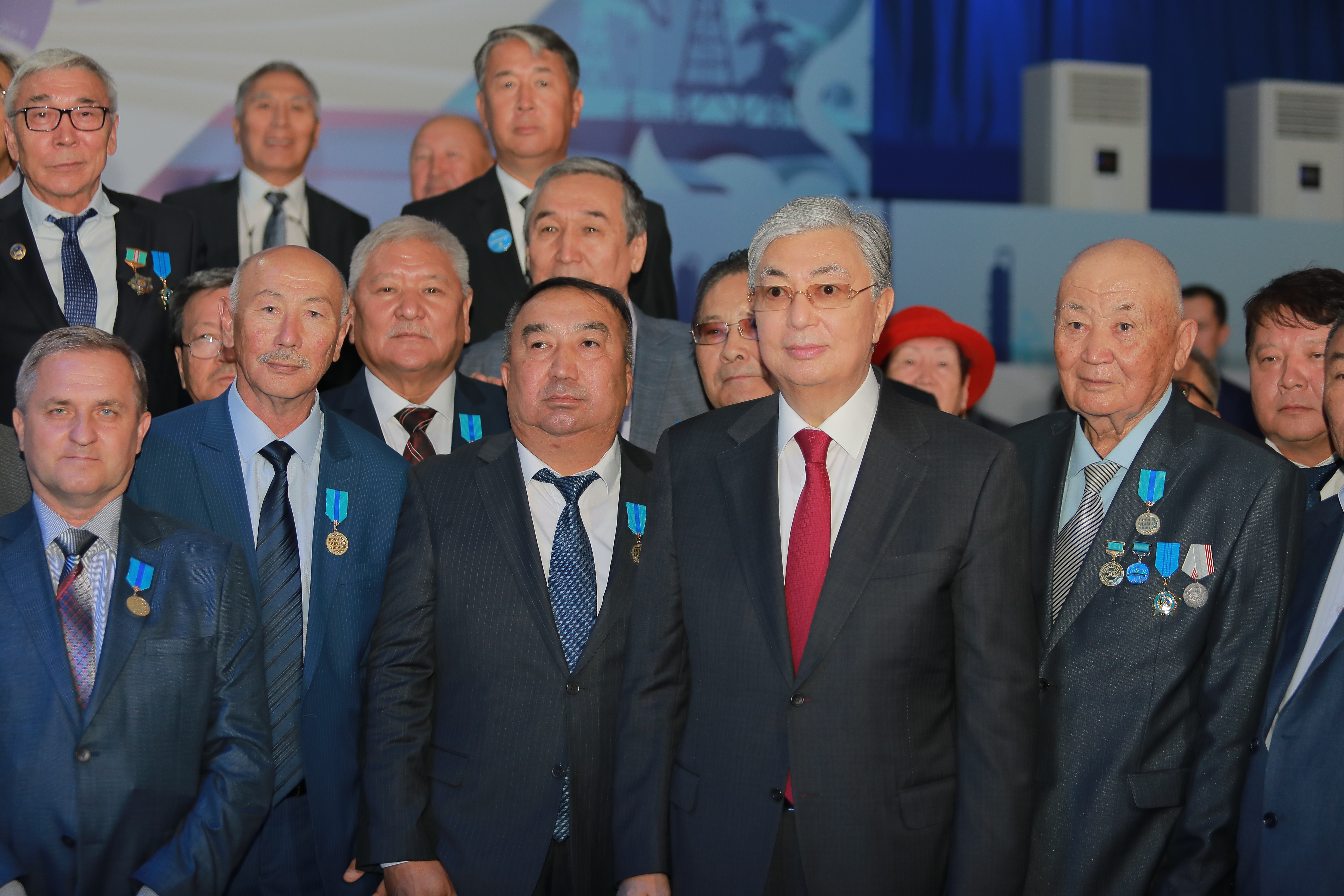 Кейін мемлекет басшысы «Жайық» спорт кешенінде мұнай-газ саласы қызметкерлерін марапаттау рәсімін өткізді. Мерекелік іс-шарада "АМӨЗ" ЖШС  Хош иісті көмірстуеткер өндірісінің операторы Виктор Шайков «ҚР Алғыс хатымен» марапатталса, "АМӨЗ" ЖШС зауыт басқармасының өндірістік активтерді қайта жаңғырту бөлімінің басшысы Рулан Ажығалиев «Ерен Енбегі үшін » медалін Елбасының қолынан алу бақыты бұйырды.