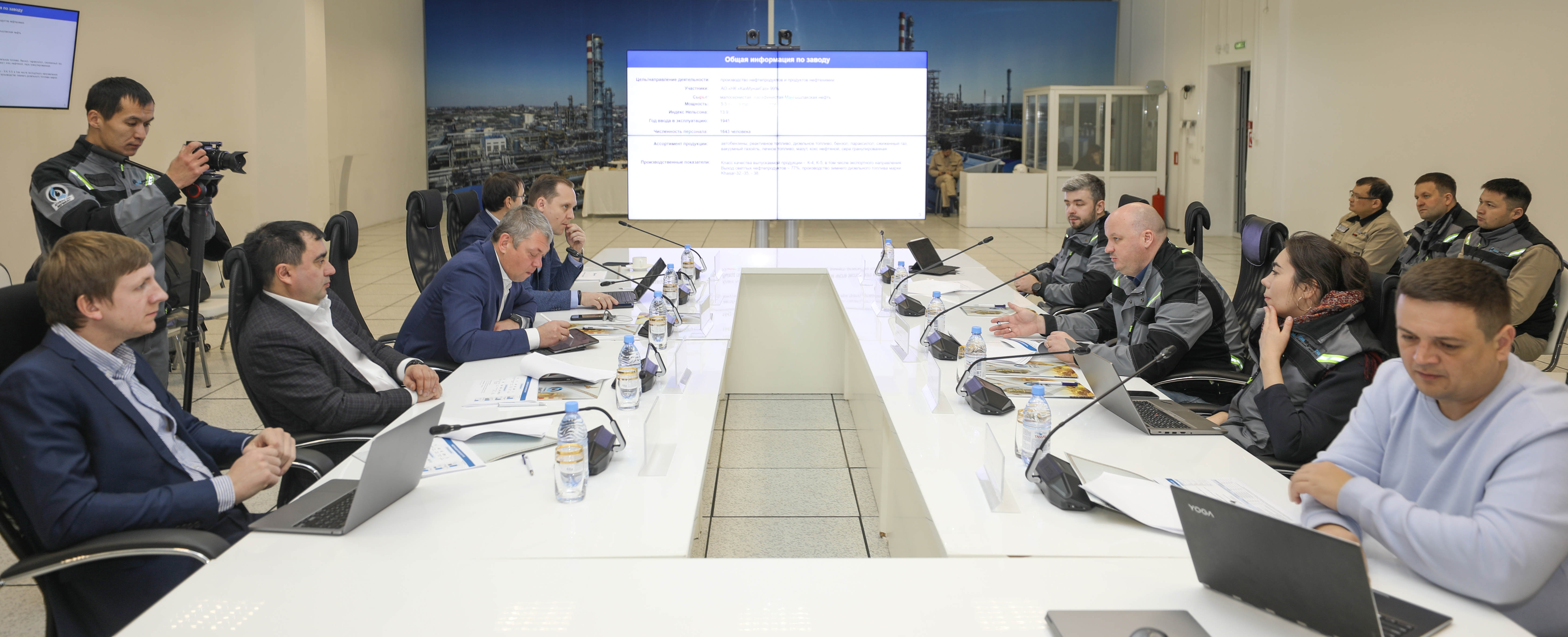 Іс-шара зауыттың тарихы және қалыптасу кезеңдерімен танысудан басталды. Кейін қонақтар мұндағы технологиялық қондырғылардың жұмысының ерекшелігі, кәсіпорында жүргізілген жаңғырту жұмыстары туралы ақпарат алды. Делагация компьютерлік-тренажерлық кешенде болып,  зауыттағы технологиялық процестер басқарылатын операторлық бөлмедегі жұмыстармен танысты.  Әрі қарай кездесу АМӨЗ-дің қазіргі жағдайы мен дамуы туралы баяндамалар тыңдаумен жалғасты. Мамандар қондырғыларды пайдаланудың сенімділігі мен зауыттың қуаттылығын арттыру, мұнай өңдеу тереңдігін ұлғайтуға қатысты жоспарлармен бөлісті. Тараптар мұнай өңдеу және мұнай-химия салаларын интеграциялау, өндірісті цифландыруға бағытталған құралдардың енгізілуі,  «Газпром нефть» ЖАҚ әзірлейтін катализаторлар мен басқа да технологияларды пайдалануға қатысты тәжірибелерімен алмасты.