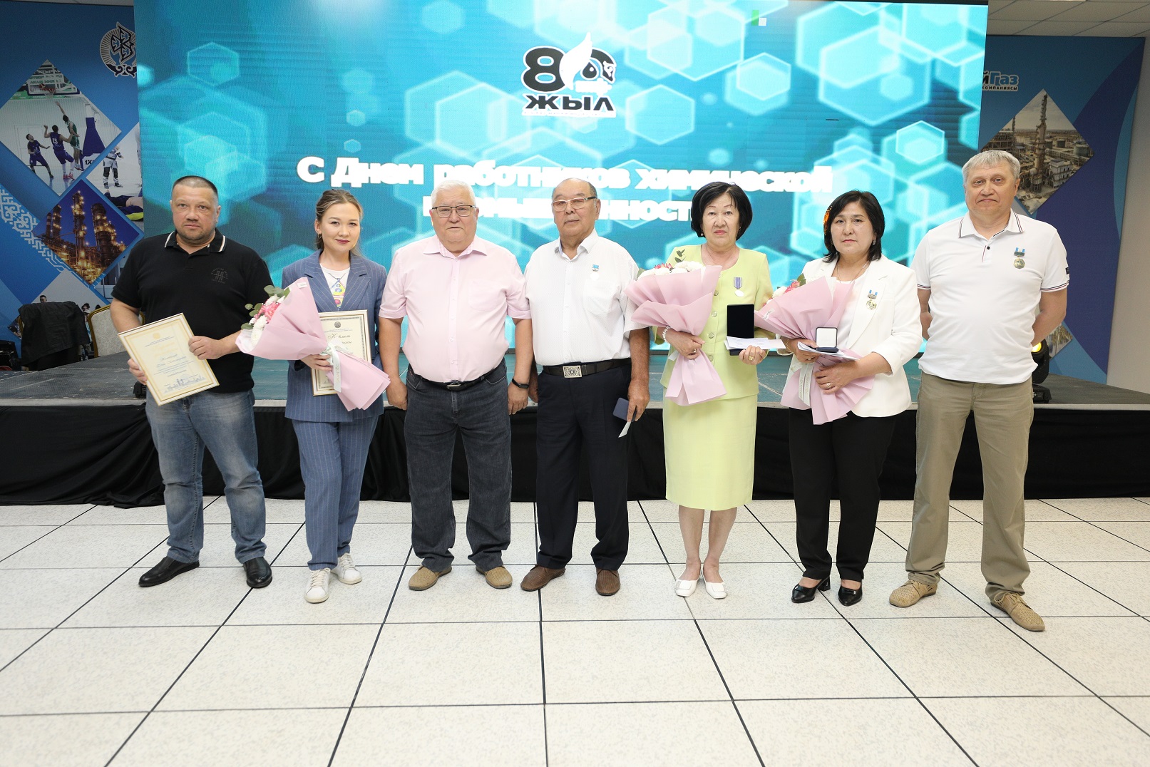 Салтанатты жиын барысында 22 қызметкер «ҚазМұнайГаз» ҰК АҚ Құрмет грамотасымен және алғыс хатымен, Атырау облысы мен Атырау қаласы әкімдерінің алғыс хатымен, «Еңбек ардагері» және «Мұнай-газ-химия саласын дамытуға қосқан үлесі үшін» медальдерімен, «Химия өнеркәсібінің үздік қызметкері» төсбелгісімен, Өнеркәсіп және құрылыс министрлігінің Құрмет грамотасымен, сондай-ақ «АМӨЗ» ЖШС Бас директорының алғыс хатымен марапаталды.