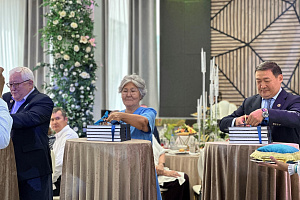 АМӨЗ-де 16 жылдан астам еңбек еткен Эрик Югай ардагерлер атынан құттықтау cөз сөйлеп, кәсіпорын басшылығына алғыс білдірді.